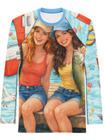 Bright colours, vintage style artwork with BFFs catching fish and a fit made for moving, swimming and exploring. Throw it on, head outside and get stuck into the good stuff.