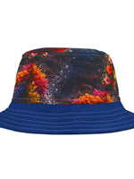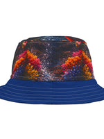 This vibrant bucket hat brings bold, painterly color to sunny days and late-night festivals alike. Lightweight and durable 100% polyester holds a rich, all-over print of blurred floral bursts and deep, starry textures. The structured brim keeps sun and glare at bay while decorative contrast stitching adds a handcrafted touch. Wear it with a sundress or layered over a worn tee and denim — it reads like an effortless statement piece that travels from beach afternoons to music-late evenings.