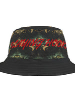 A bold, all-over print bucket hat that brings late-night street energy to your everyday wear. The dark, kaleidoscopic pattern wraps the crown while contrasting red script cuts across the front for an edgy, underground vibe....