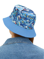 This cheerful bucket hat brings sunny, playful energy to warm days at the beach, pool parties, or music festivals. The all-over print shows happy dolphins and bright ocean blues, with bold yellow lettering that pops across the crown. Lightweight polyester keeps the shape while staying breathable; the stitched brim adds a casual, sporty finish. Choose between stitch color options and three sizes to get the right fit, and enjoy a sewn-in label and US-made quality. Wear it with board shorts, a linen shirt, or festival gear to tap into carefree summer vibes and sea-salty fun.