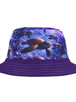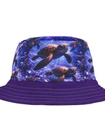 A playful, ocean-drenched bucket hat that brings the calm and curiosity of sea turtles to your everyday adventures. The all-over print shows a gentle school of turtles gliding through sunlit water, while the contrasting solid brim and visible decorative stitching give the hat a handcrafted, festival-ready edge. Lightweight and sturdy polyester keeps the shape while offering reliable sun protection for beach days, boardwalk strolls, or weekend markets. Three size options and two stitching color choices make it easy to find the right fit and a look that matches your vibe. Sewn-in label and USA-made construction add a quiet reassurance of quality. Slip it on and feel the slow, steady rhythm of the tide with you — relaxed, rooted, and quietly curious.