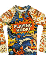 Protect the little ones from the elements with this colorful kids rash guard. Its sun-protective fabric and long body and sleeves make it perfect for running around on the beach, or just being active indoors.