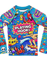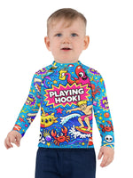 Protect the little ones from the elements with this colorful kids rash guard. Its sun-protective fabric and long body and sleeves make it perfect for running around on the beach, or just being active indoors.