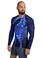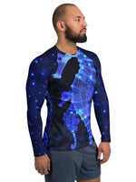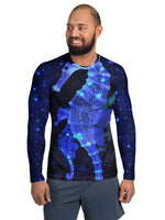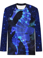 Delicate but resilient, Glowing Sea Horse is inspired by the soft glow of life moving quietly through dark water. Gentle light, deep blues and subtle detail come together to create a calm, drifting design that feels peaceful rather than loud.