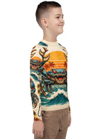 Get a colorful and soft rash guard that's the right fit for any active teen who loves water and contact sports. Its longer body and sleeves will protect the skin, while the fitted design means it won't get in the way even during the most intense activities.