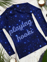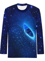 The Bioluminescent Whale Shark design is inspired by quiet night swims, glowing tides, and those moments when the ocean feels bigger than everything else. Deep blues, soft light, and subtle stars create a calm, drifting feel — like moving through water under a full sky.