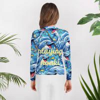 Don't be afraid to be your most active self in this smooth and versatile long-sleeve rash guard! It protects you from the sun, wind, and other elements while doing sports, and the slim fit, flat ergonomic seams, and the longer body gives extra comfort.